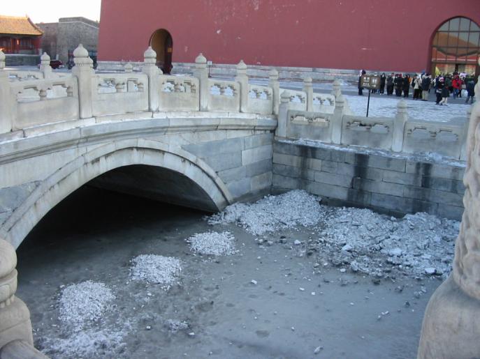 Moat, just inside Forbidden City. In January this was frozen and the cleared snow and ice from the paths had been dumped on it.