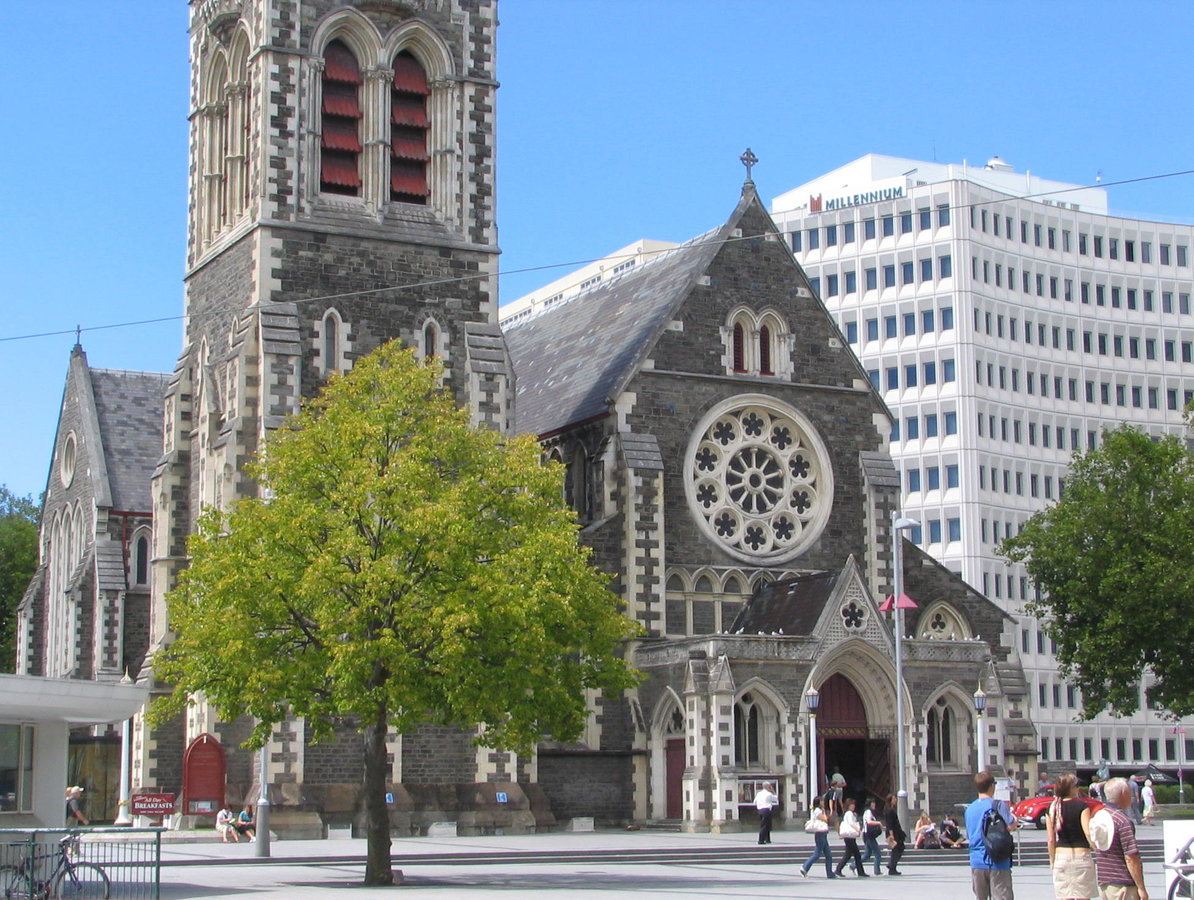 Local limestone from Castle Hill; Australian hardwood & copper. Seriously damaged in 2011 earthquake and as of 2024 still not restored.