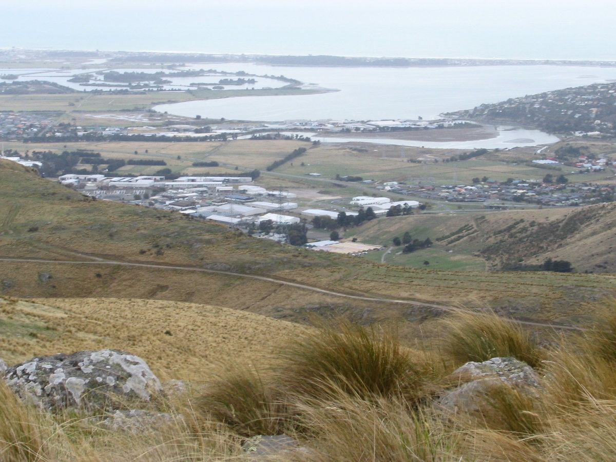 Avon-Heathcote estuary & part of the enormous sprawl of Christchurch with Summit Road in foreground