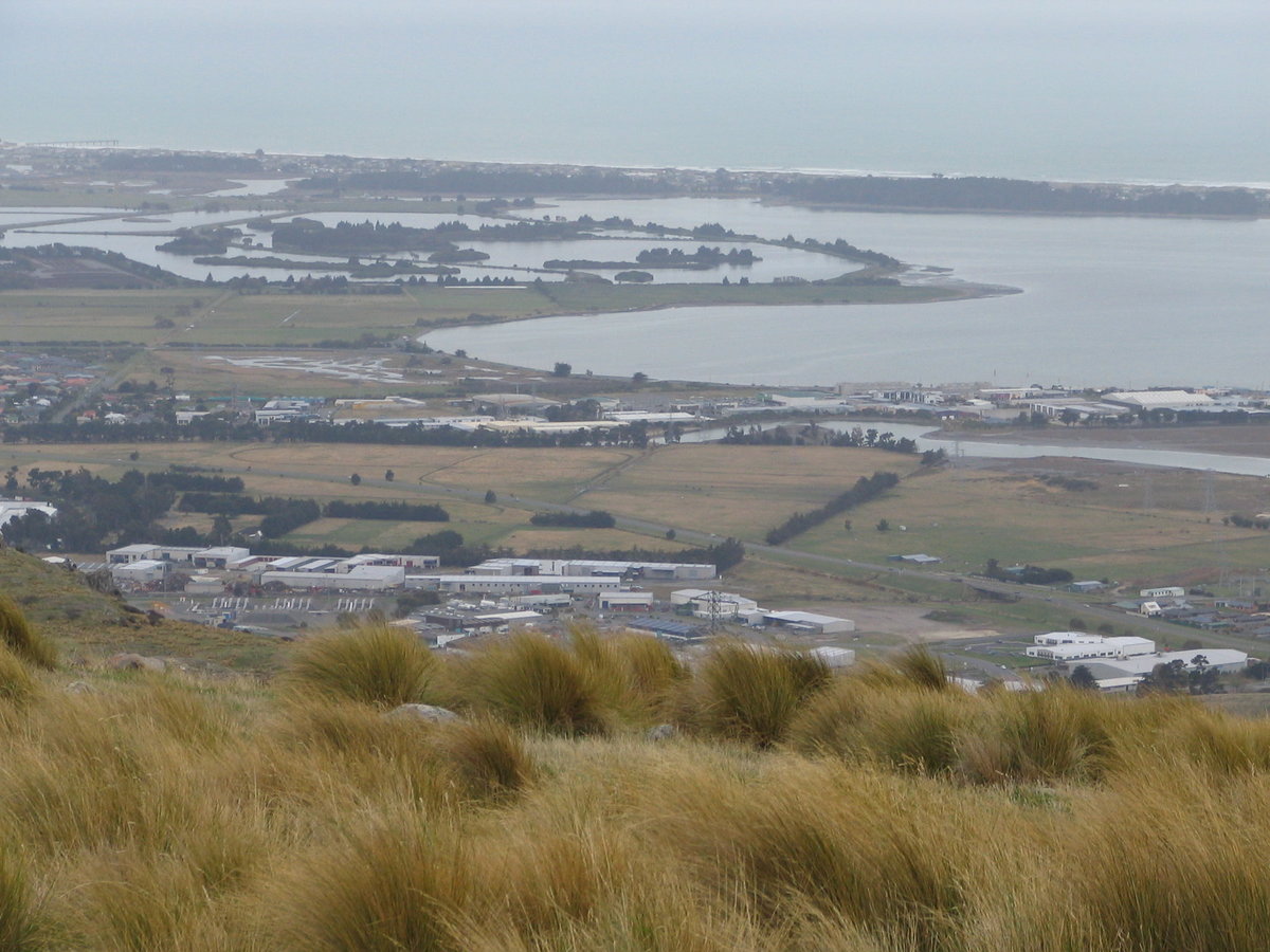 Looking down on Avon-Heathcote estuary & part of the enormous sprawl of Christchurch