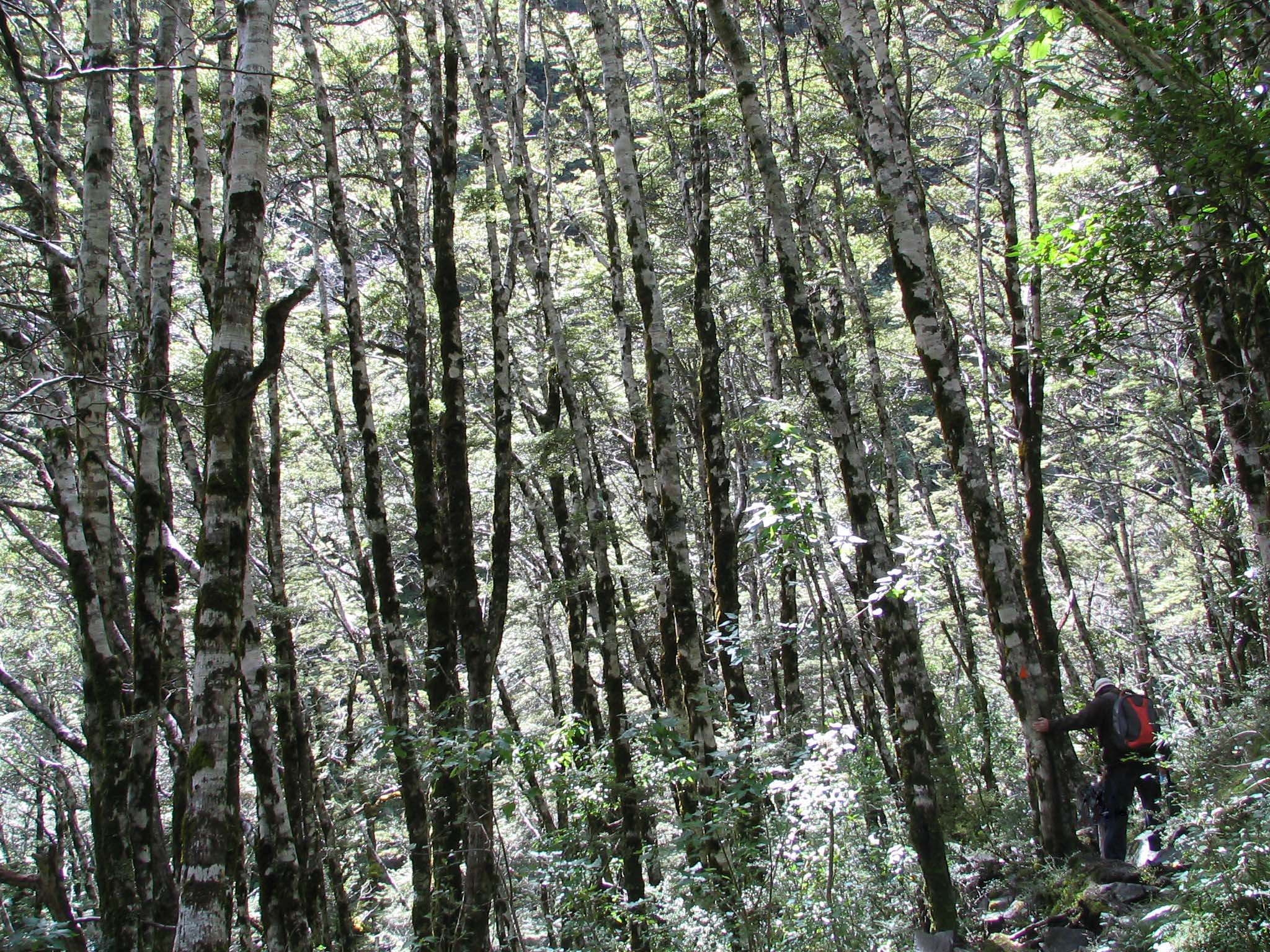 Mountain Beech ('Nothofagus solandri') - lichen growth giving the bark a silvery look