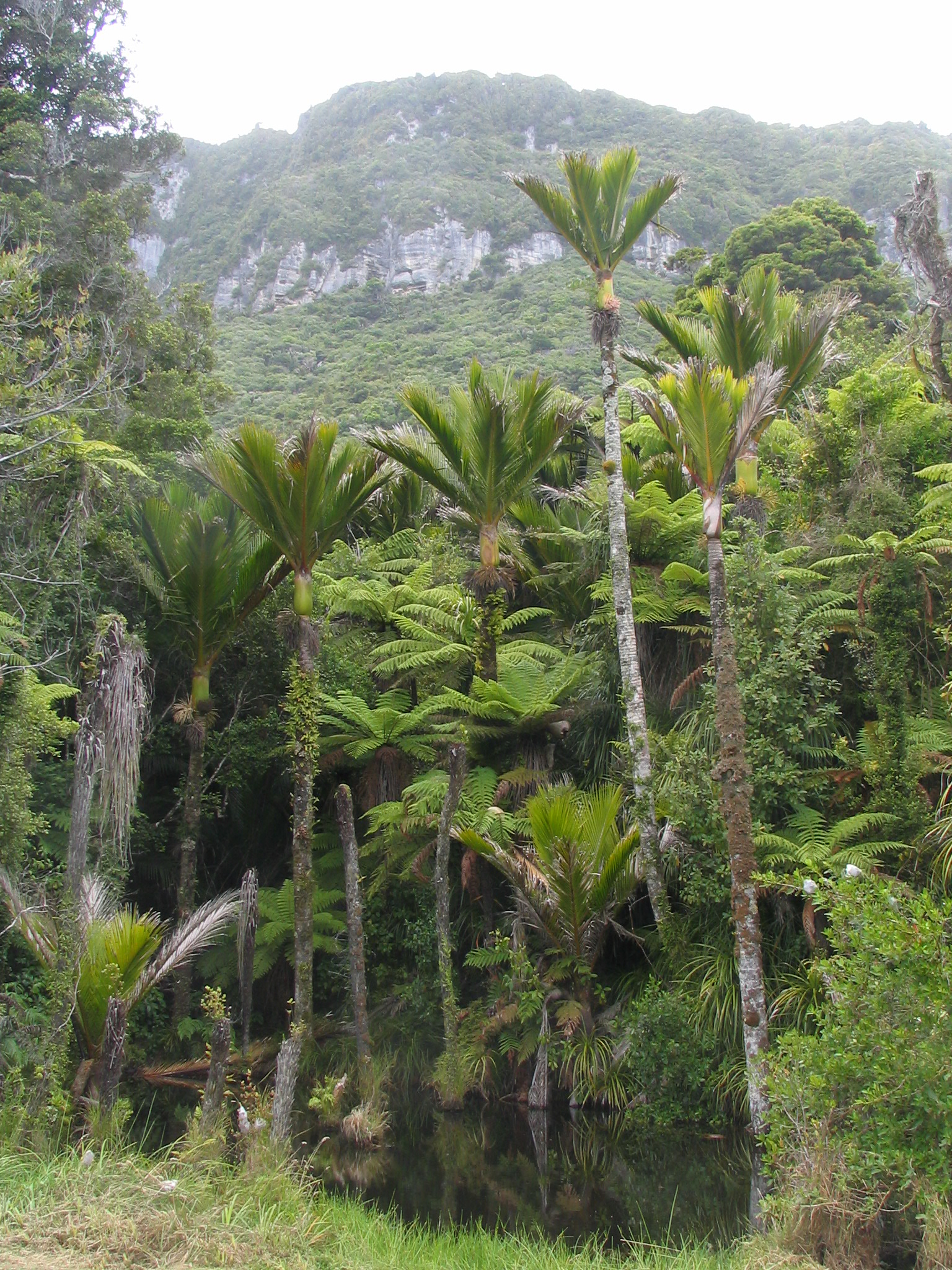 Nikau Palms and tree ferns beside the road