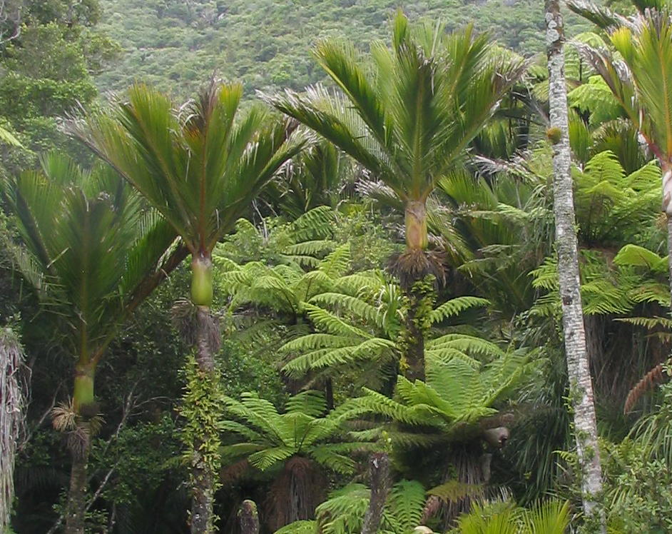 Nikau Palms and tree ferns beside the road