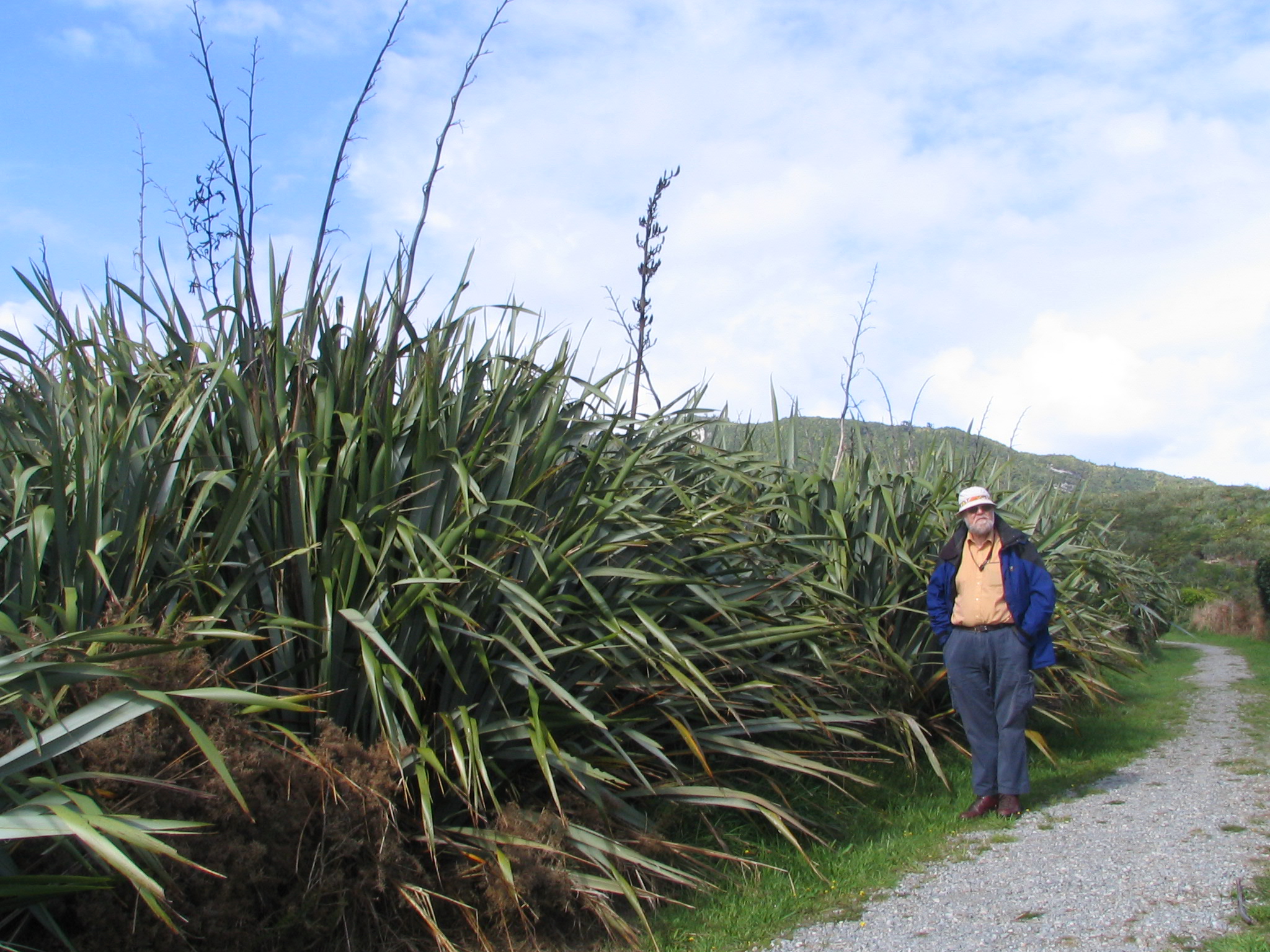Point Elizabeth Reserve, N of Greymouth; flax used by Maori to make basket, mats, ropes, fishing nets, clothing & rafts. This is former farmland.