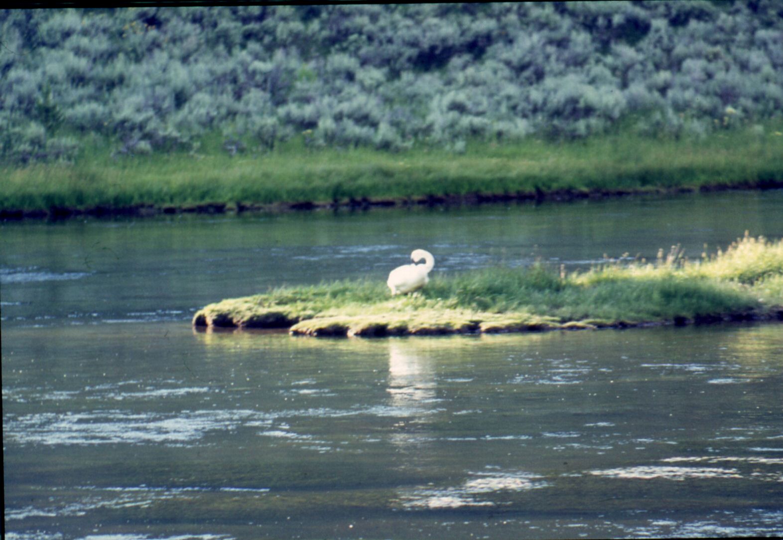 Yellowstone - trumpeter swan from bus on the way in