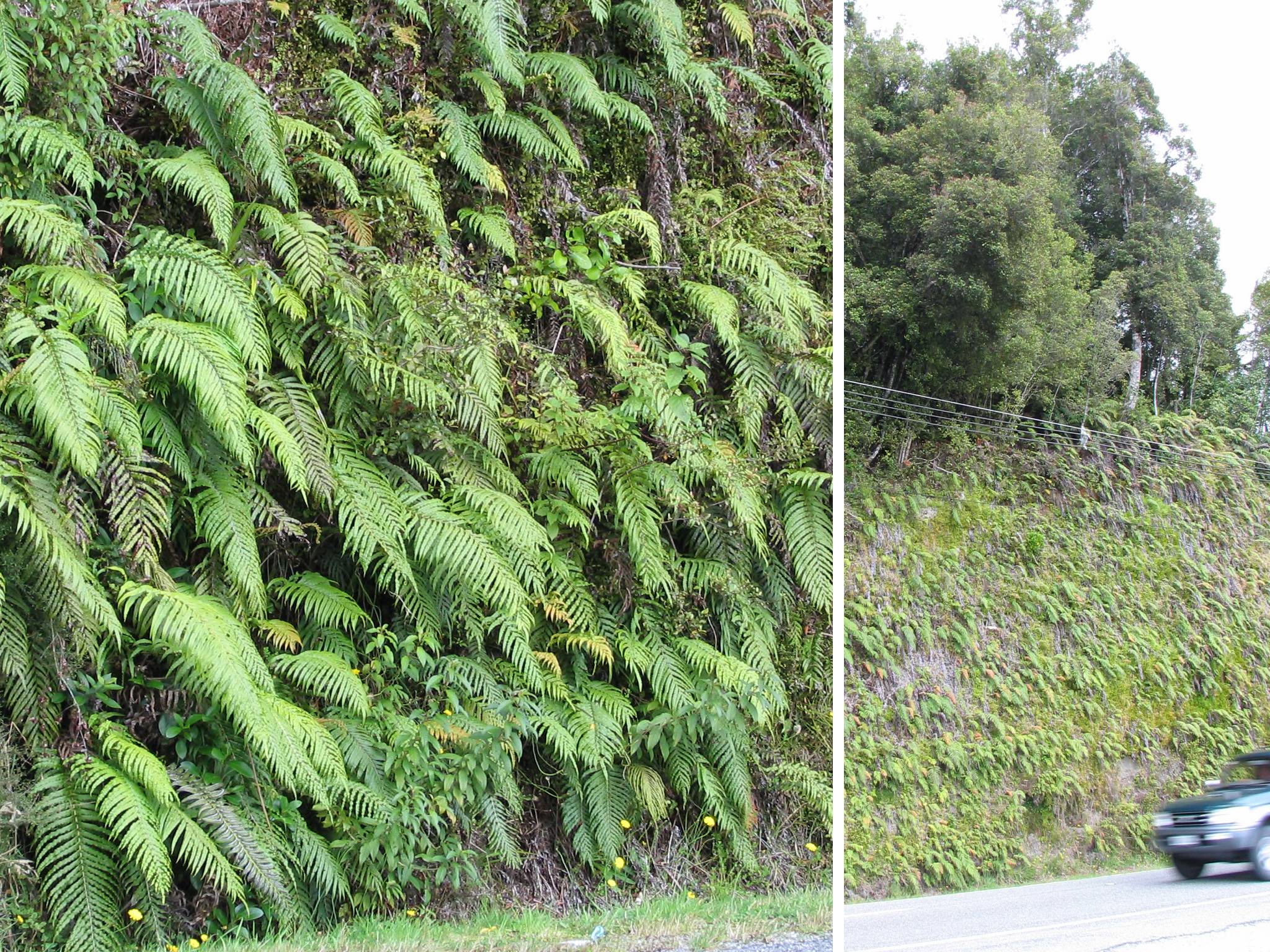 High roadside (SH 6) bank covered with ferns - Lake Mapourika - very attractive
