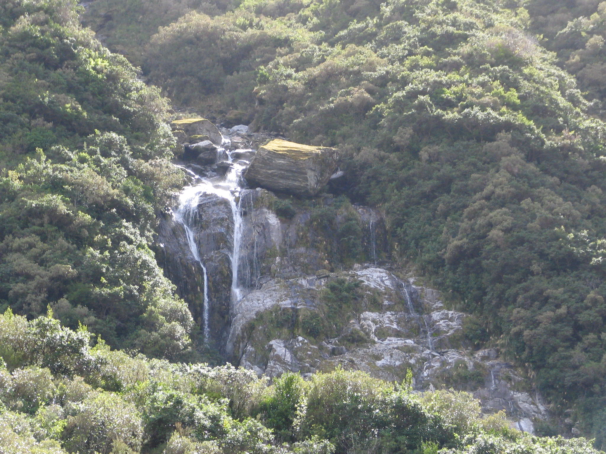 Fox Glacier - one of several waterfalls on the valley side