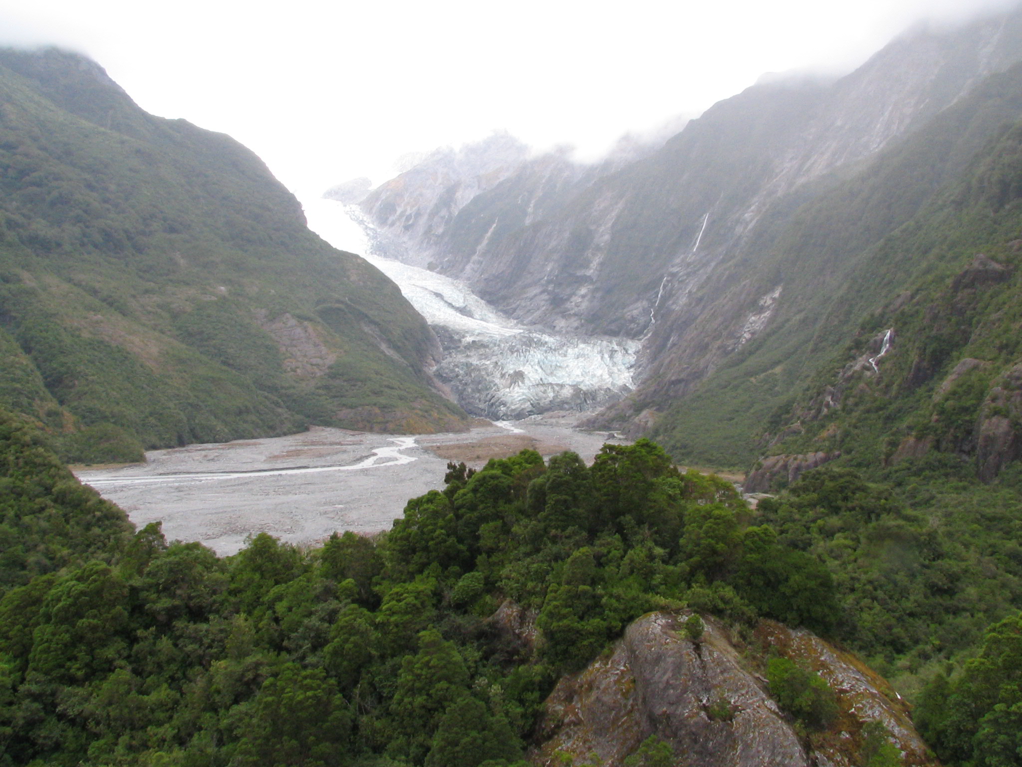 Franz Josef Glacier from Sentinel Rock, with roche moutonnee in foreground