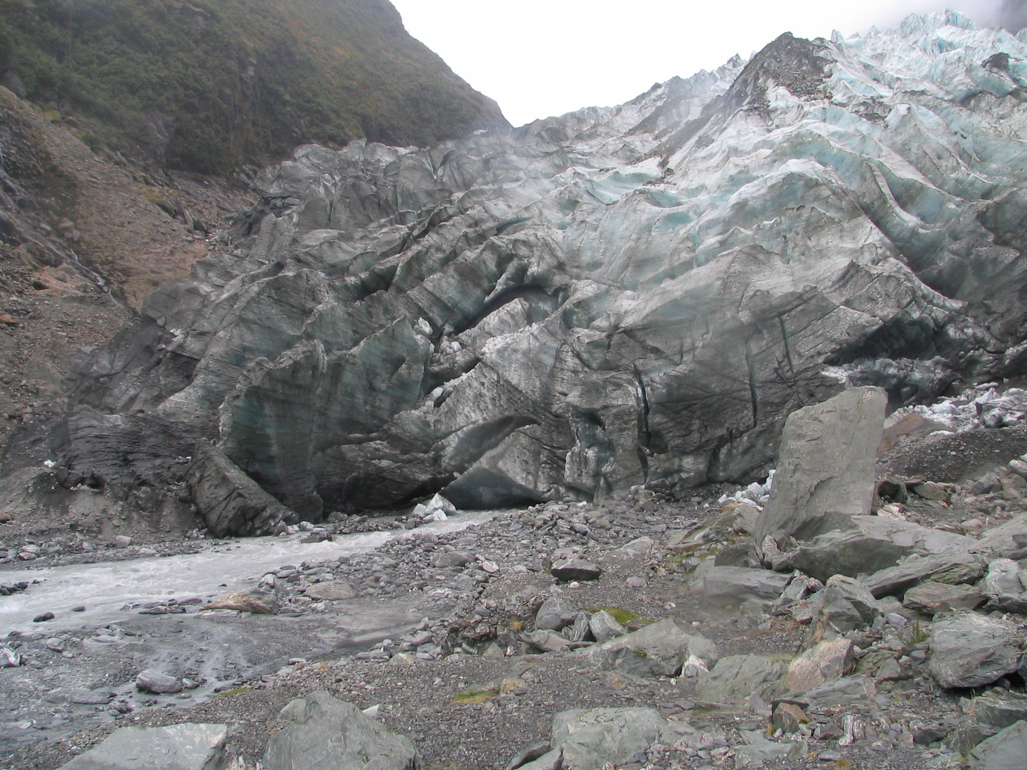 Franz Josef Glacier - terminal face - mouth of glacier and glacial stream