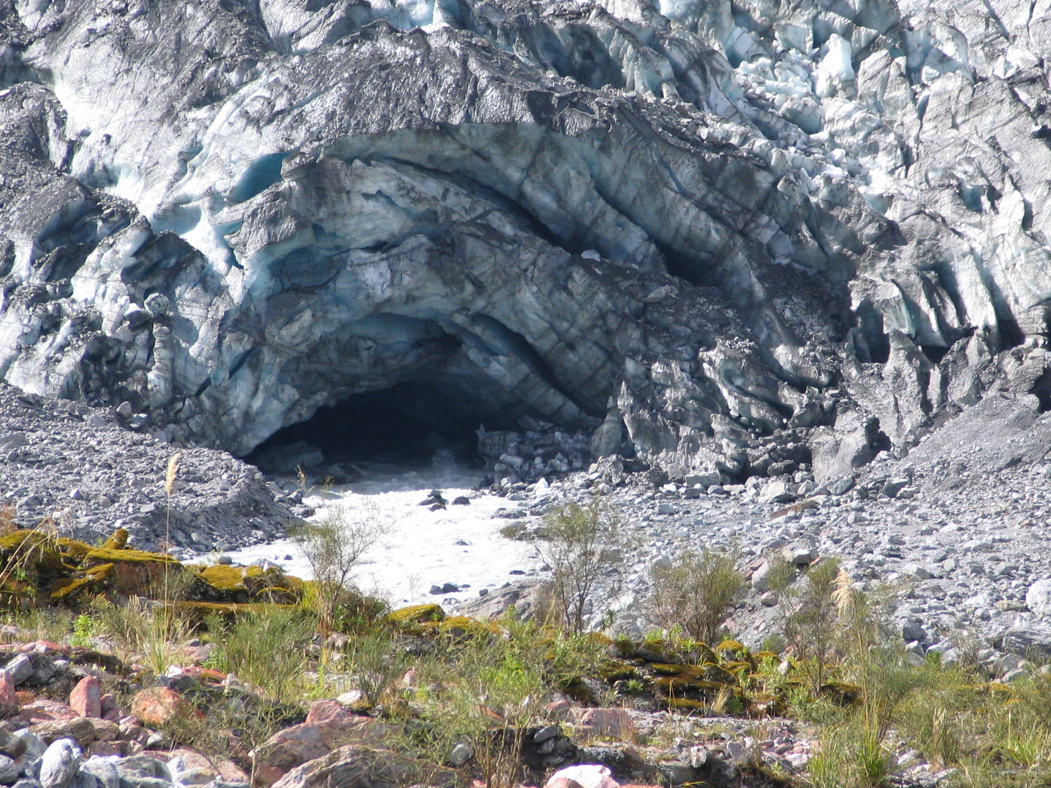 Fox Glacier - with the glacial river emerging from the terminal ice