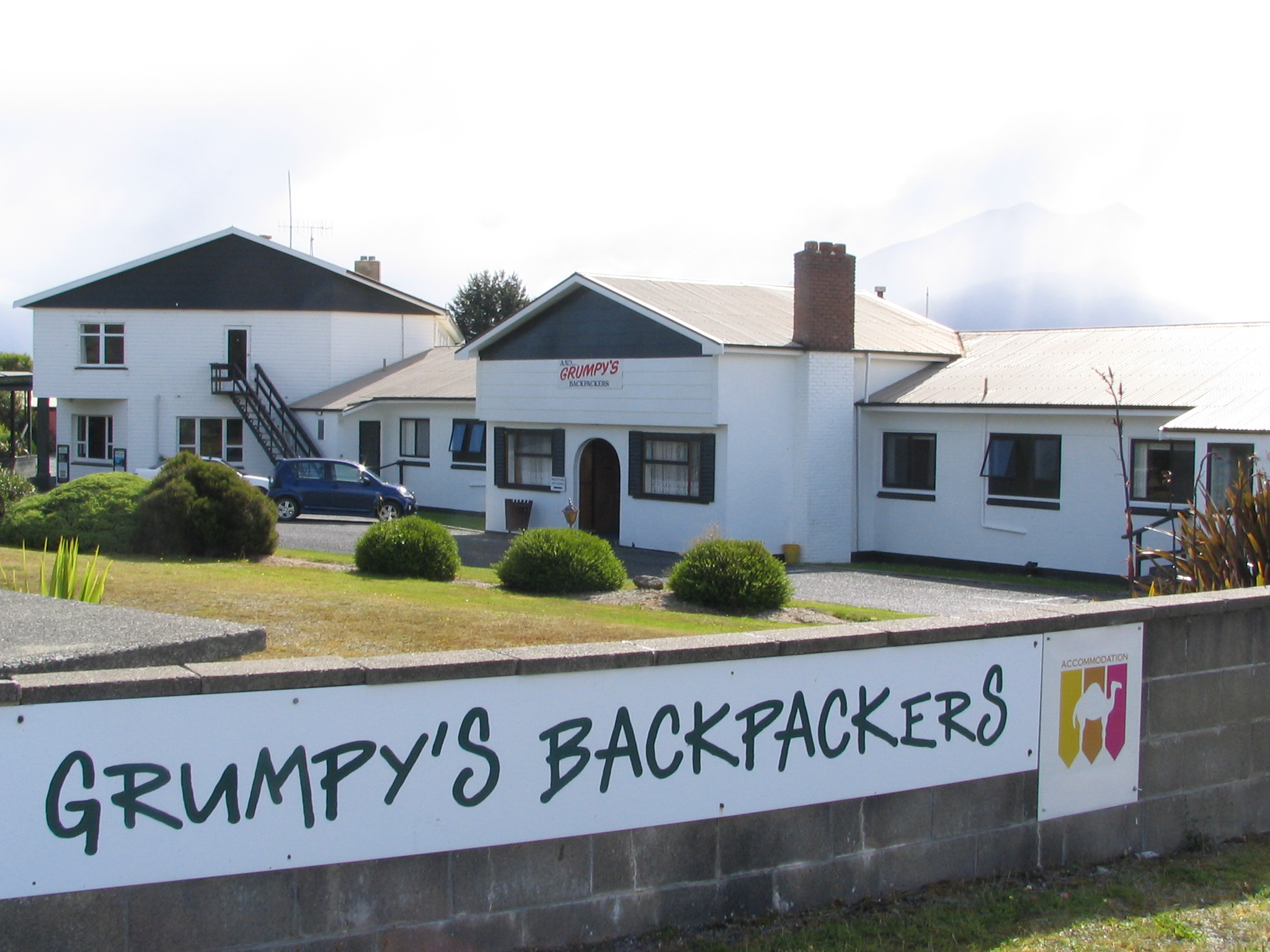 the 2 storey building behind is a separate hotel, Fiordland National Park Hotel, but has shared reception with Grumpy's