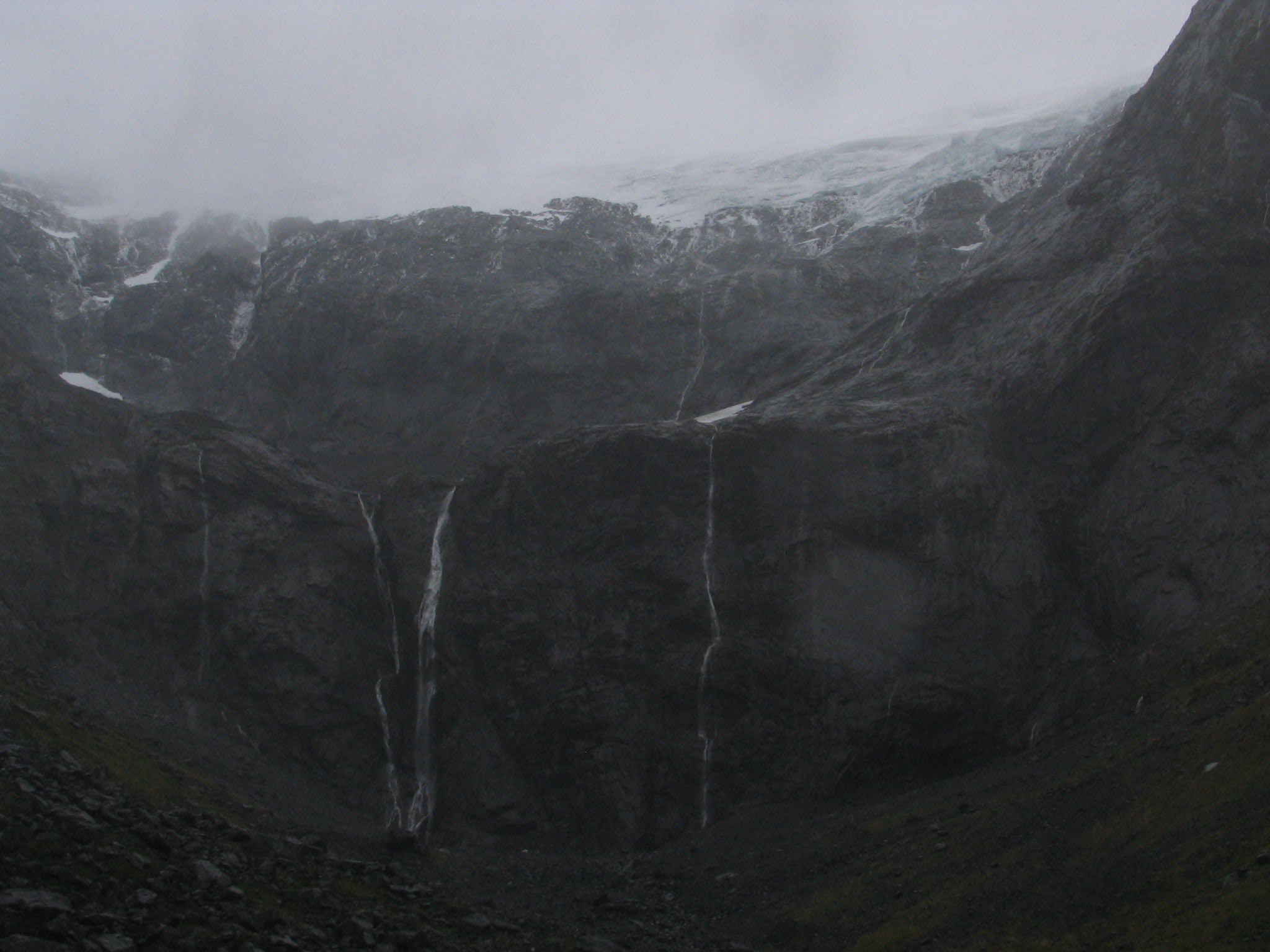 Hanging valley by Homer Tunnel (Te Anau side) - in rain and cloud