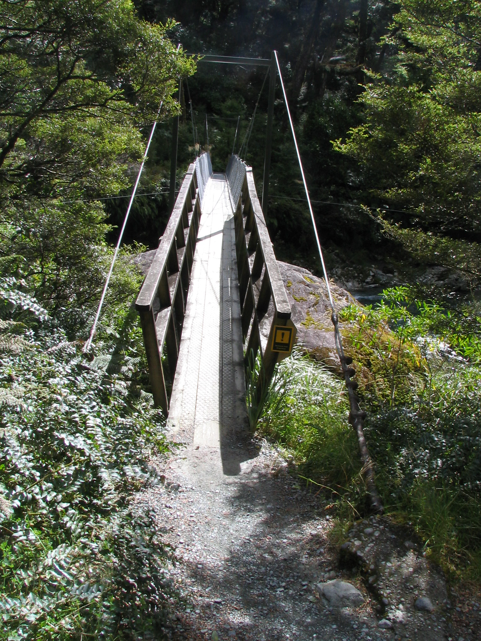 Milford: bridge across Hollyford River to Marion Falls