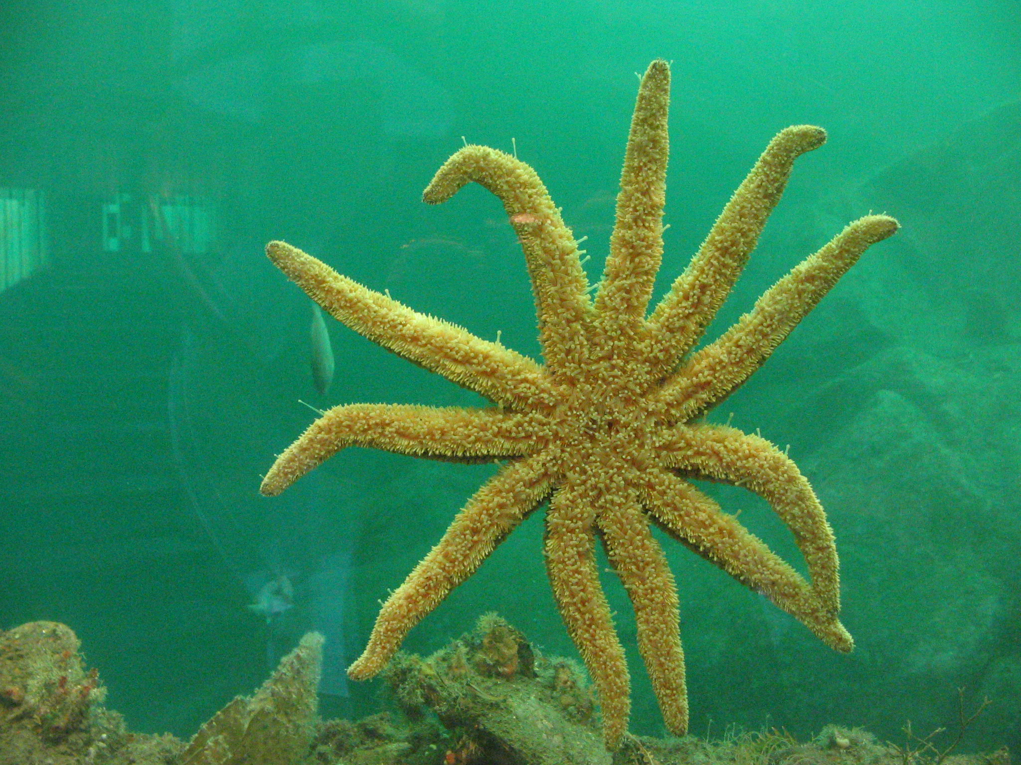 Underwater Observatory - starfish 'Coscinasterias calamaria' on observatory window