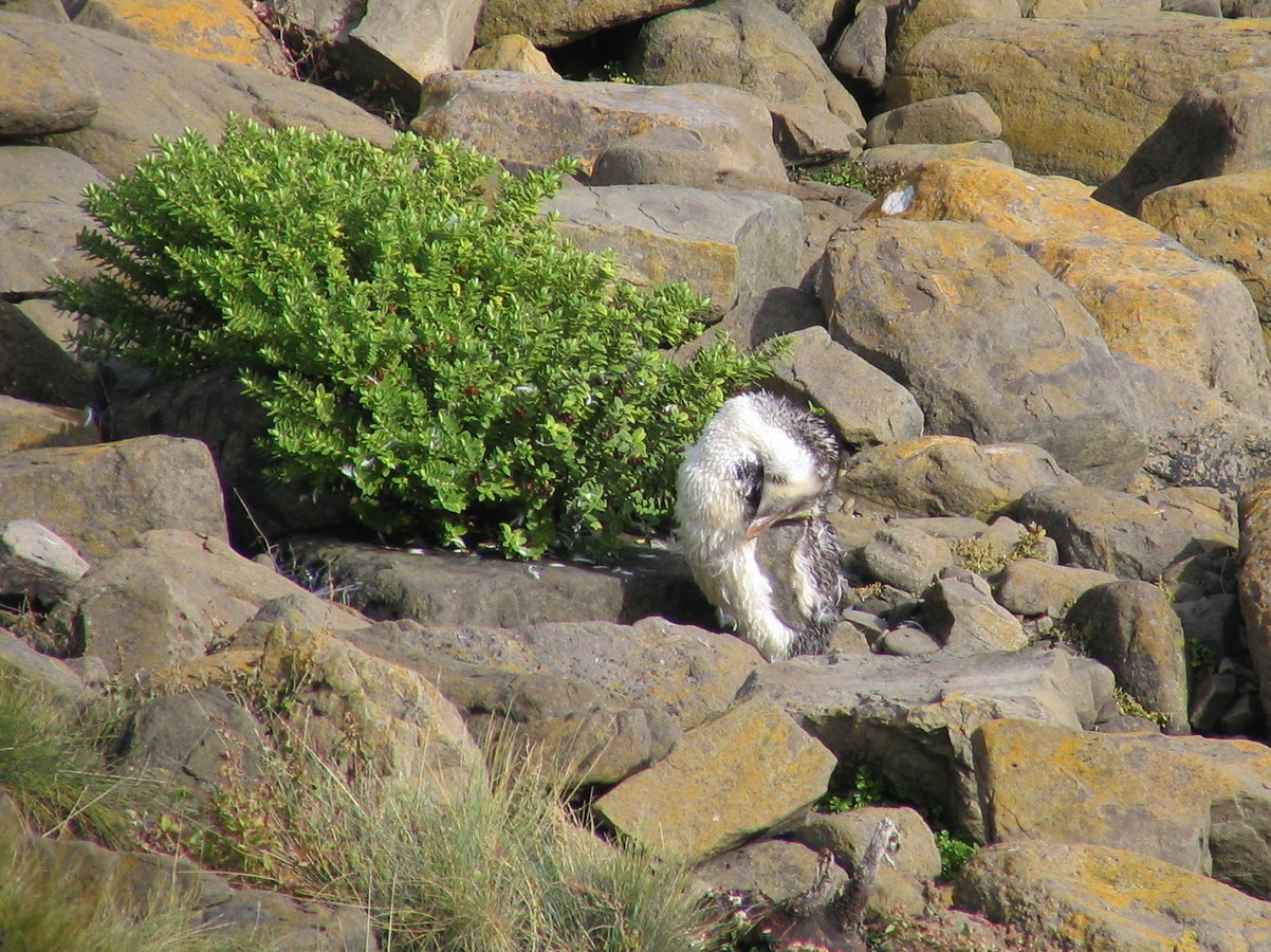 Fiordland penguin (endemic to NZ) - moulting and looking very ragged - Porpoise Bay