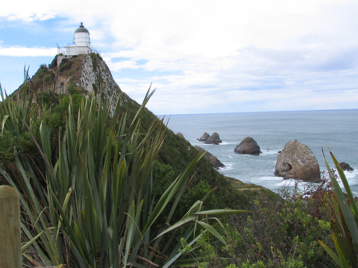 Nugget Point Lighthouse - on a resistant strike ridge of hard sandstone