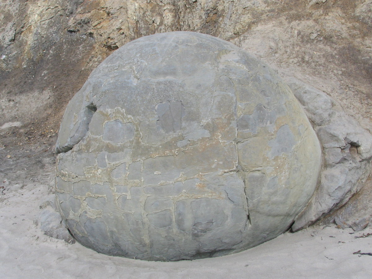 Boulders (this one about 5' high) are eroded from the mudstone cliffs