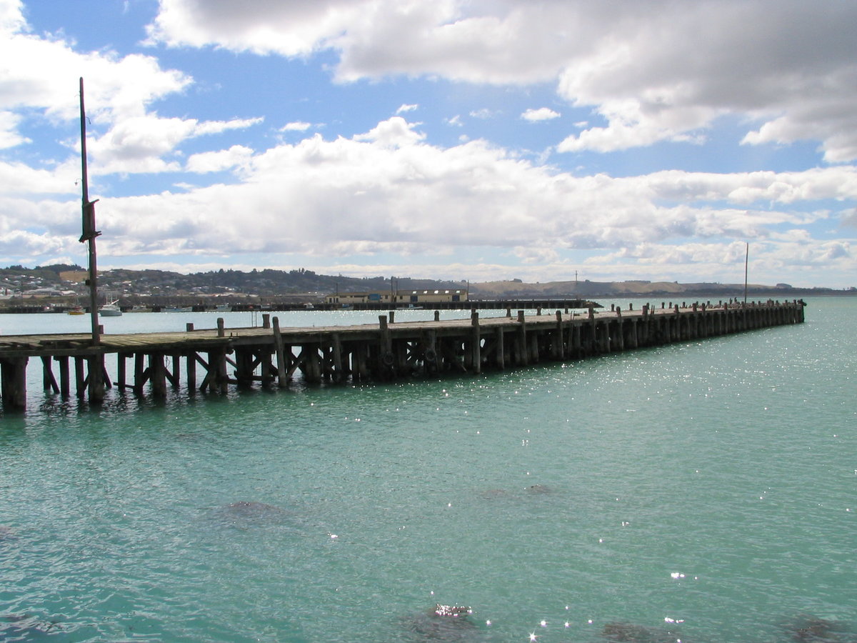 Oamaru - old Victorian harbour - breakwater (1872-84) - concrete base