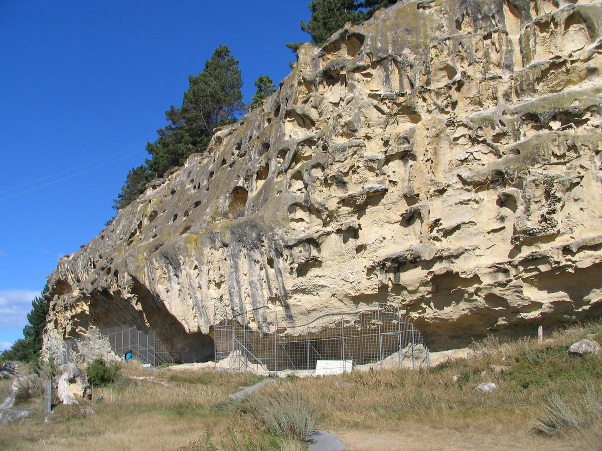 Takiro Maori rock art site - 2 limestone rock shelters - with people scale