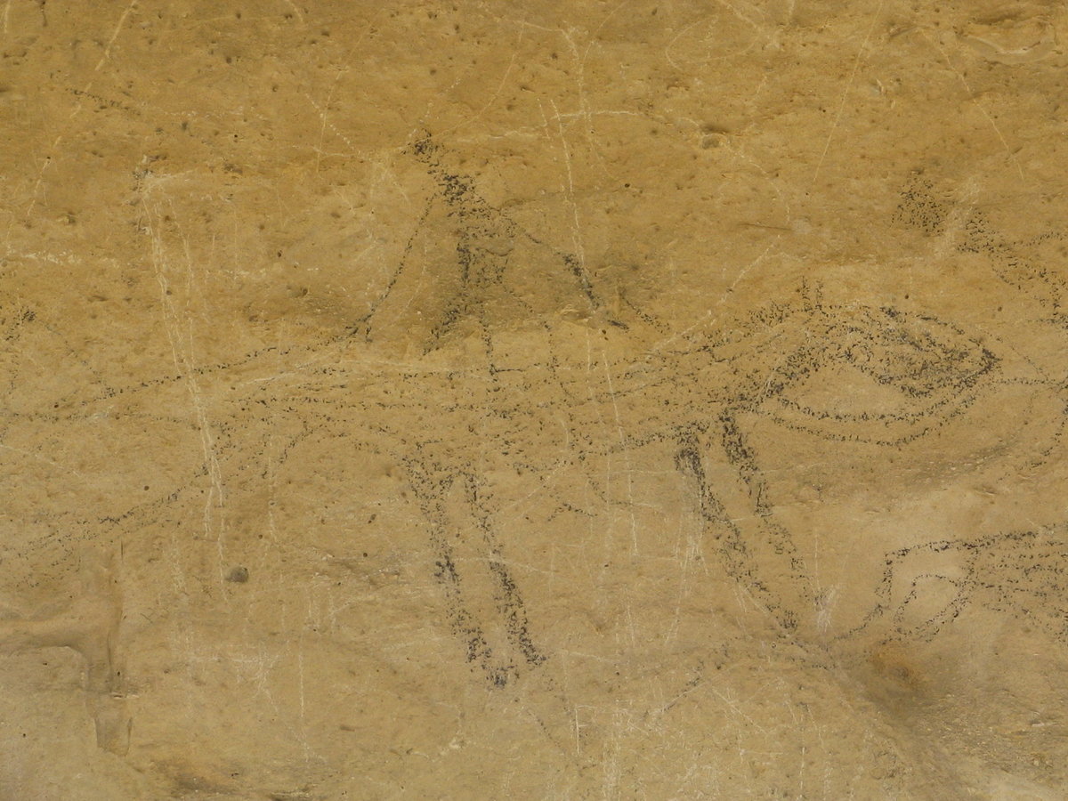 Takiro Maori rock art site - nr Duntroon - C19th - person riding horse