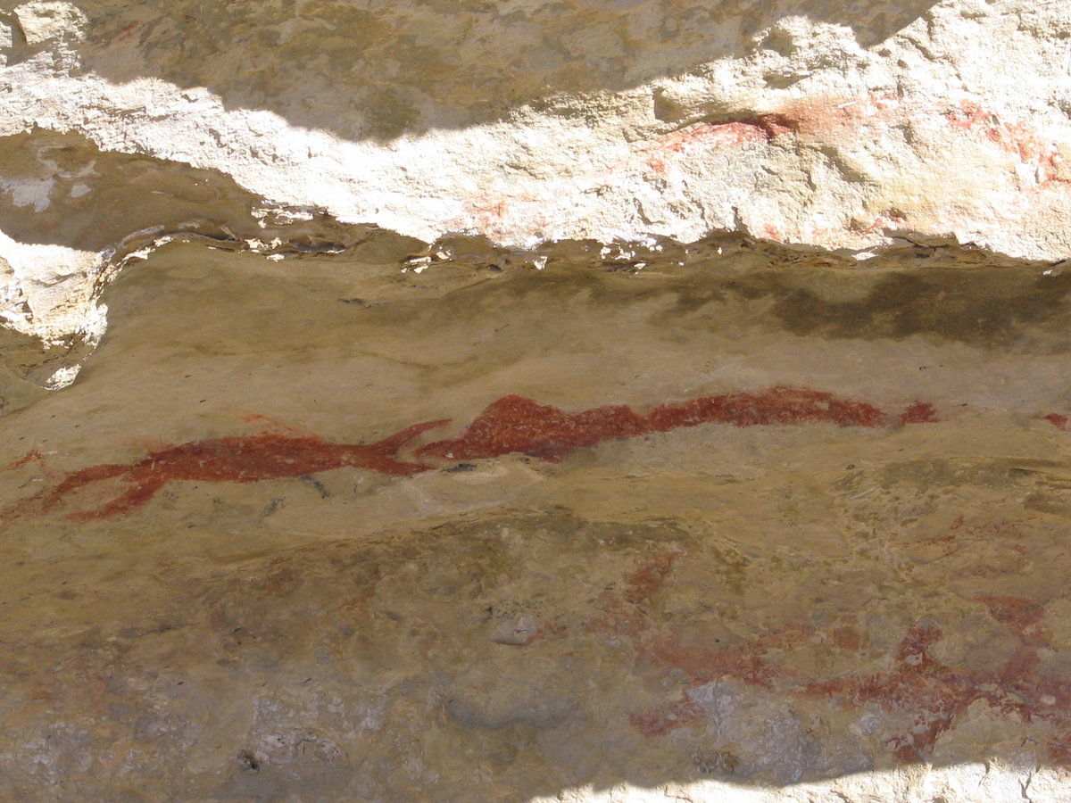 Takiro Maori rock art site - nr Duntroon - people and Taniwha (large water creature in Maori legends)