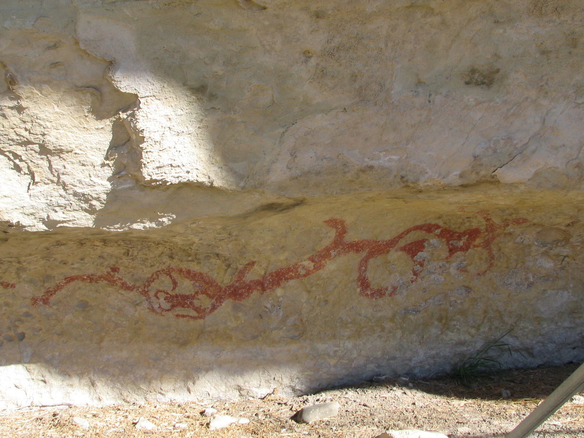 Takiro Maori rock art site - nr Duntroon - people and Taniwha (large water creature in Maori legends)