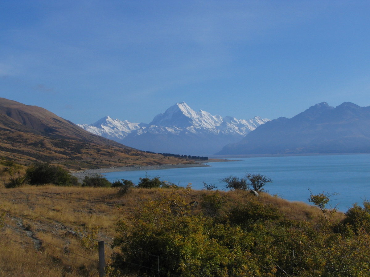 Mount Cook and Lake Pukaki (created when glaciers from Mount Cook region retreated 14,000 years ago)
