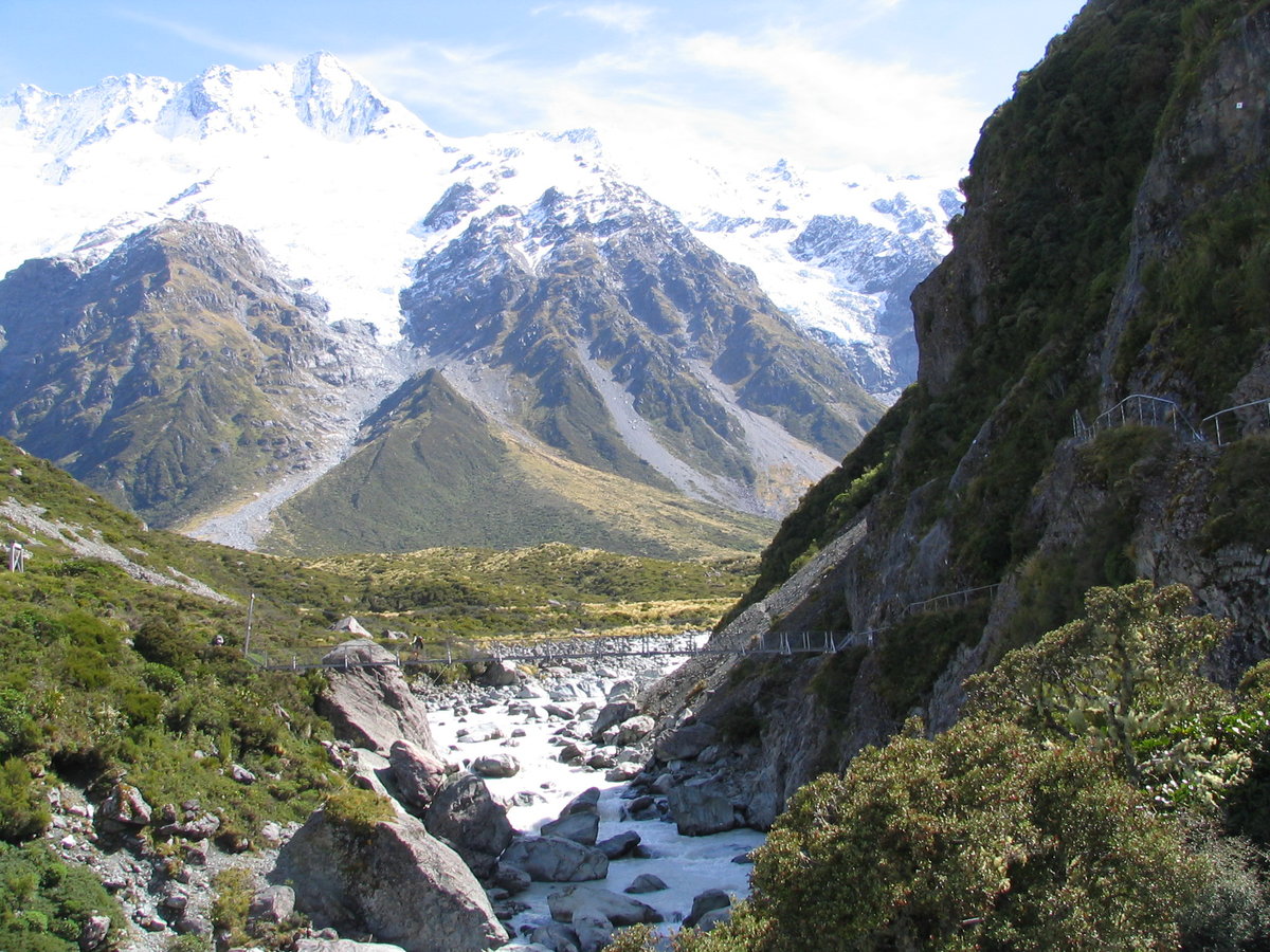 Mount Cook NP: Second swing bridge over Hooker River