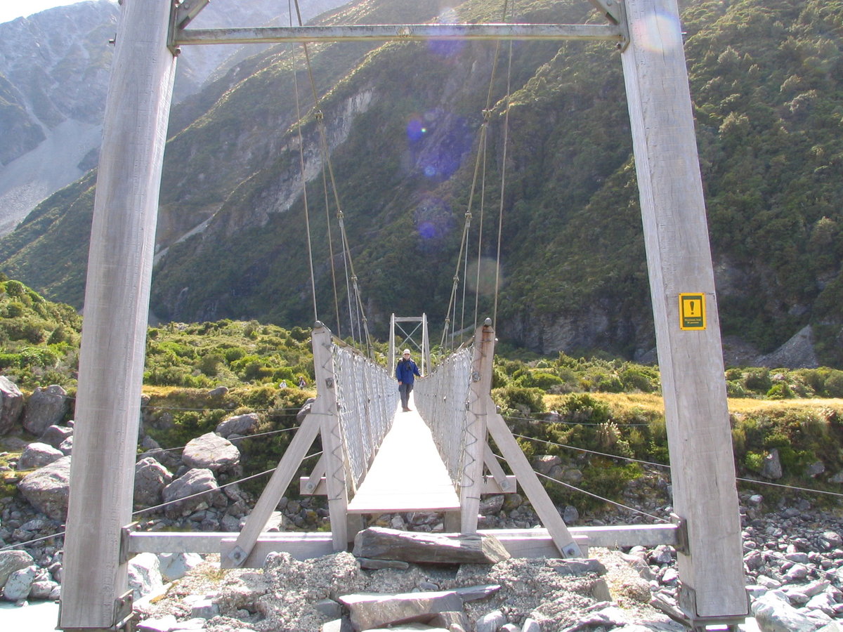 Mount Cook NP: Second swing bridge over Hooker River with M