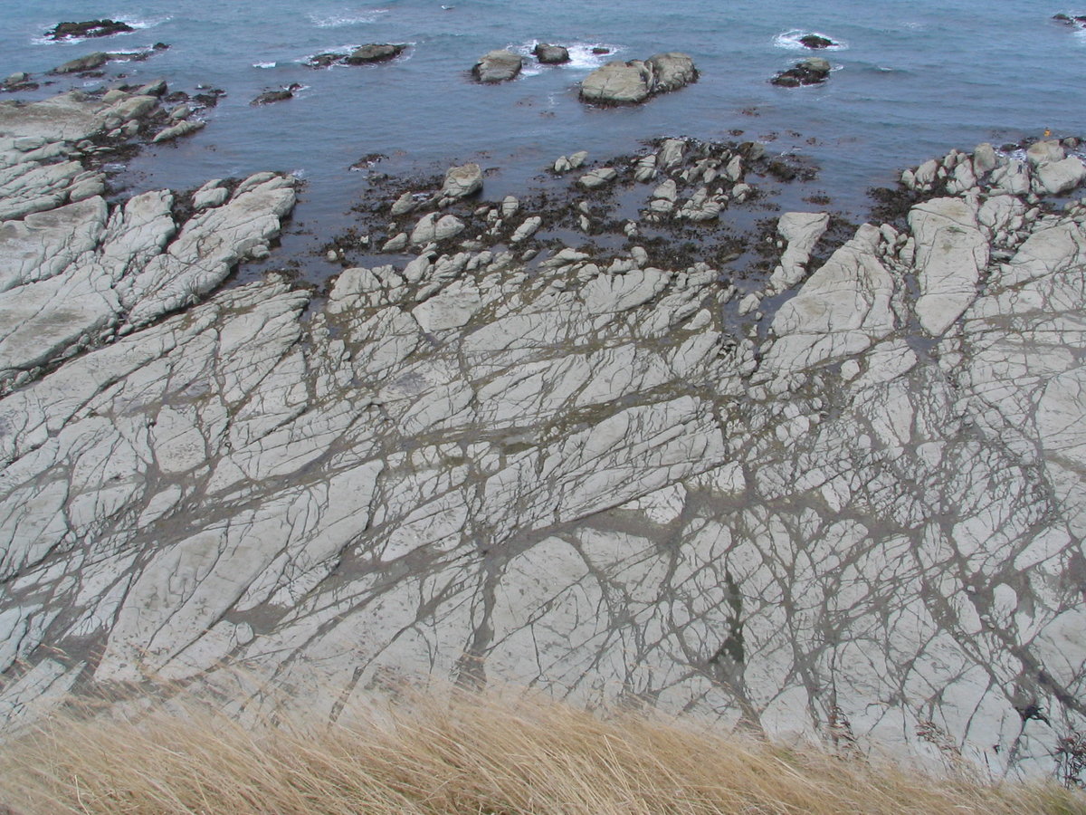 Kaikoura peninsula - wave-cut limestone platform - people scale rhs