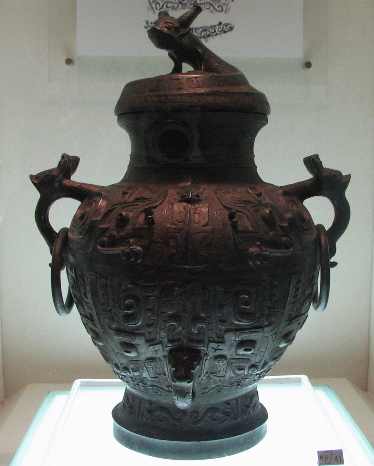 Qui dragon on top of bronze vessel - Weston Zhou dynasty (1027-771 BC)