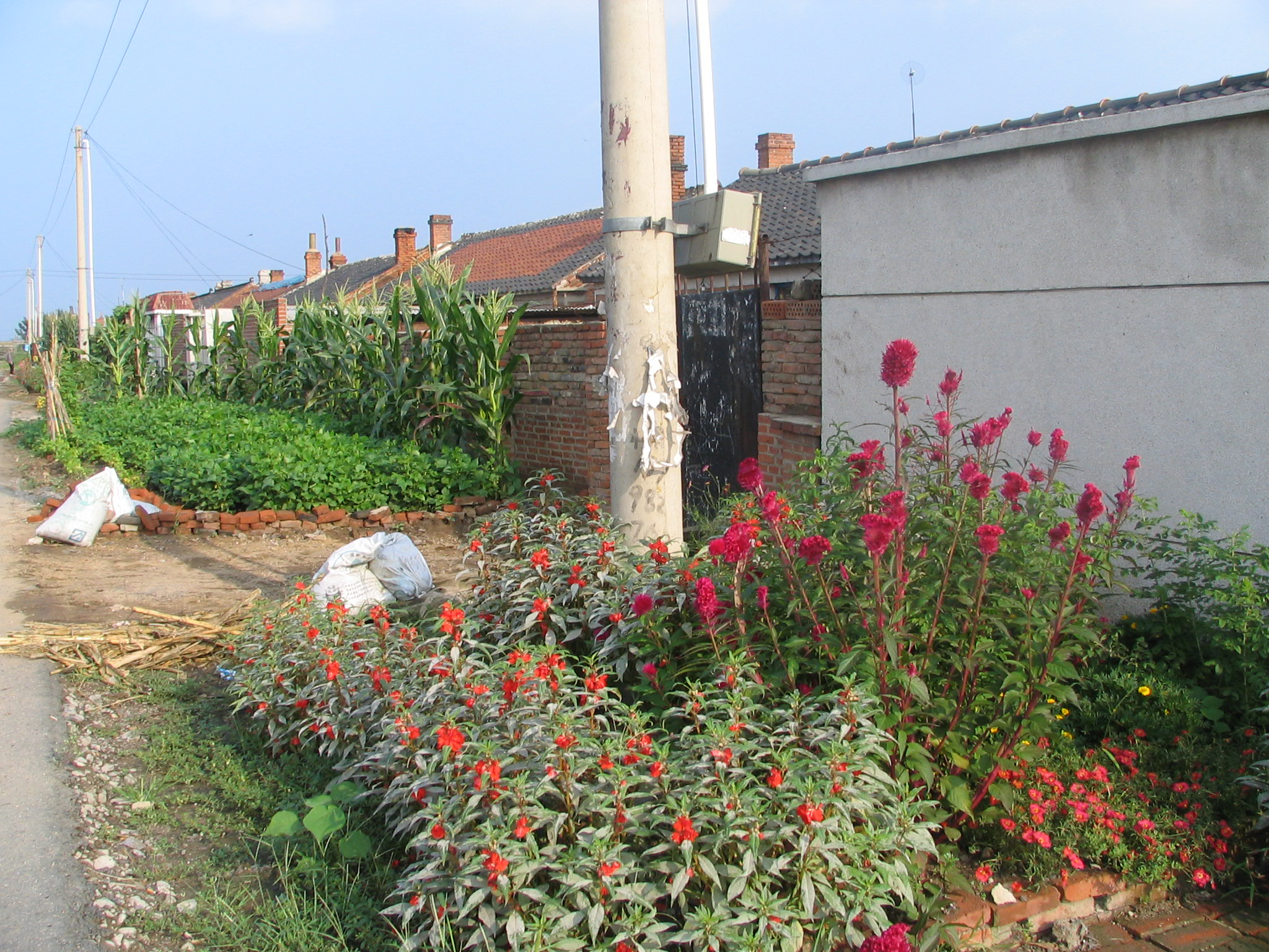 Guoqi Village by Shanyang University - land beside road utilised for crops and flowers