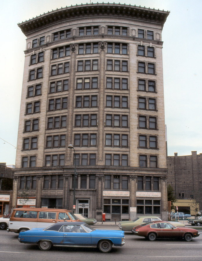 Winnipeg: Confederated Life building - built 1913 - convex frontage follows curvature of Main Street