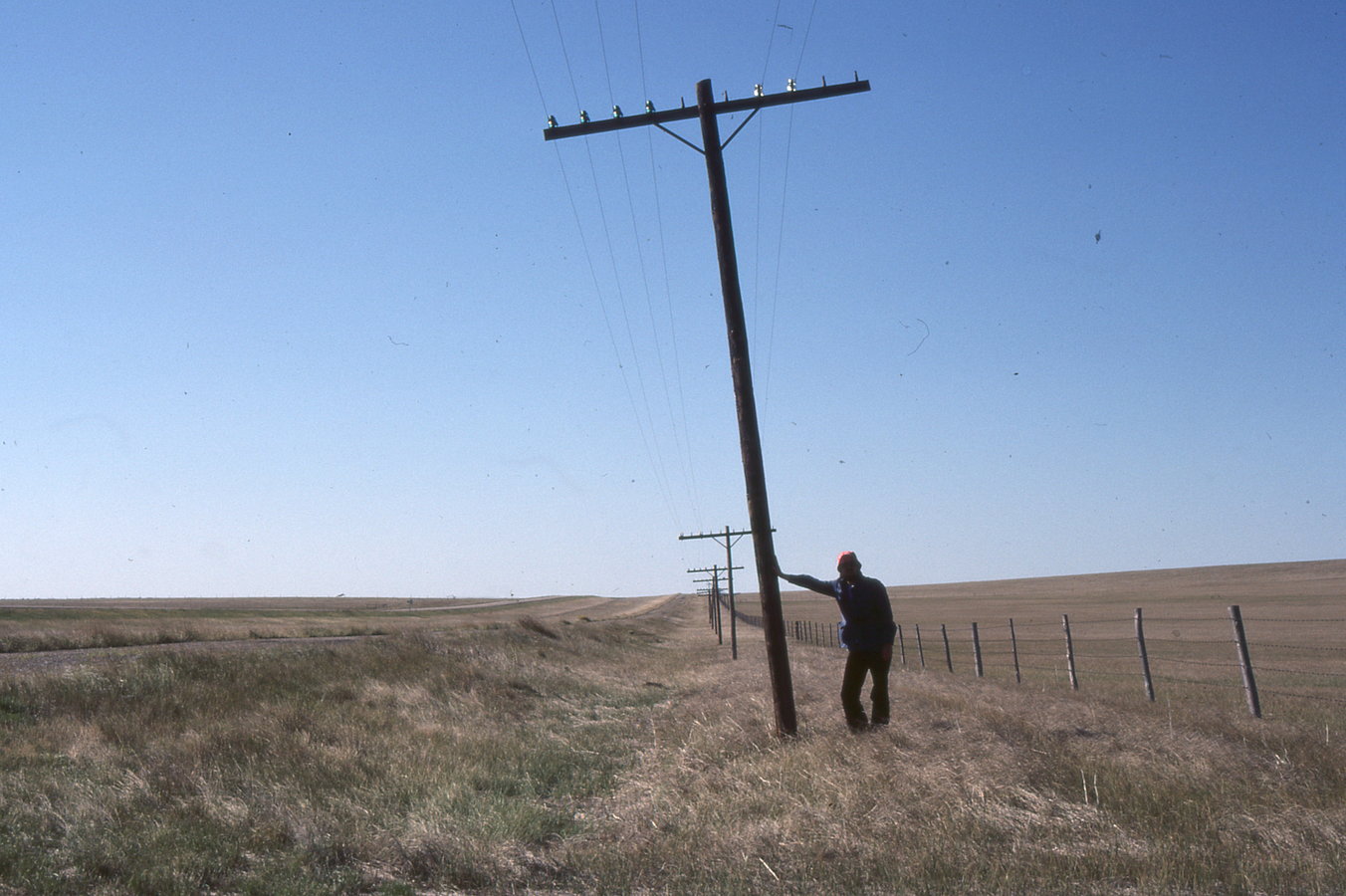 H'way 83 south of Pierre: baby telegraph poles with M for scale