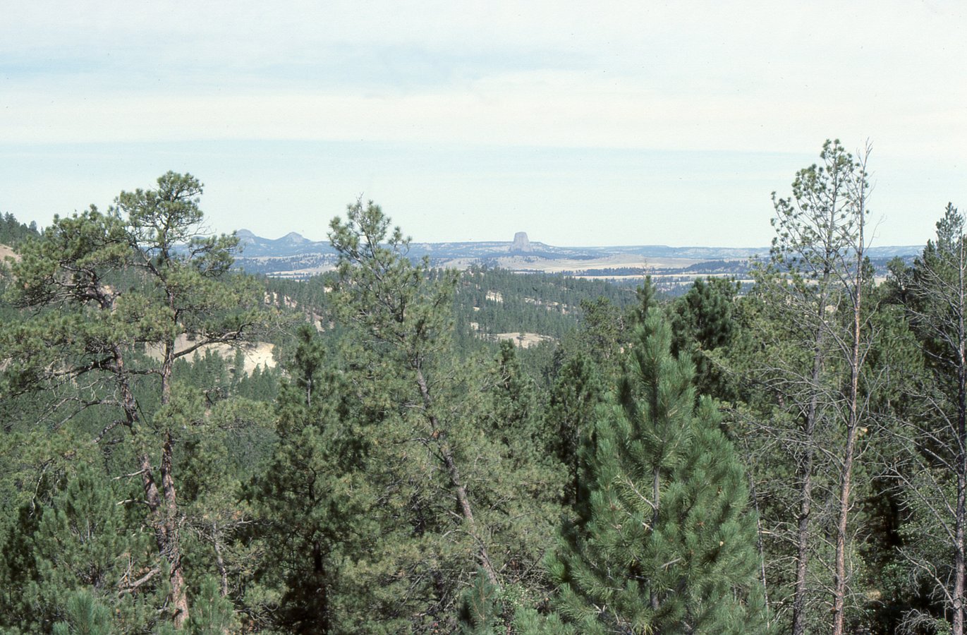 Black Hills of Wyoming - Ponderosa pines (mainly) with Devils Tower in the distance