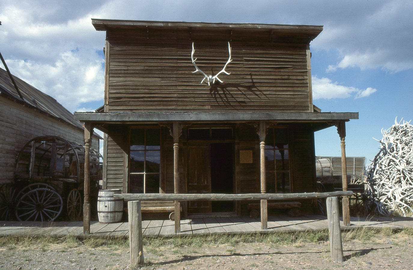 Saloon built 1880 at mouth of Wood River- bullet holes in door (inside & out)