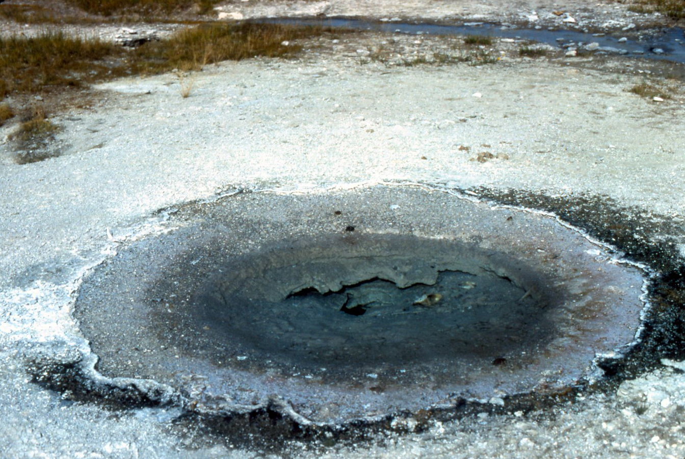Upper Geyser Basin - Old Faithful area - white clay and black pyrite
