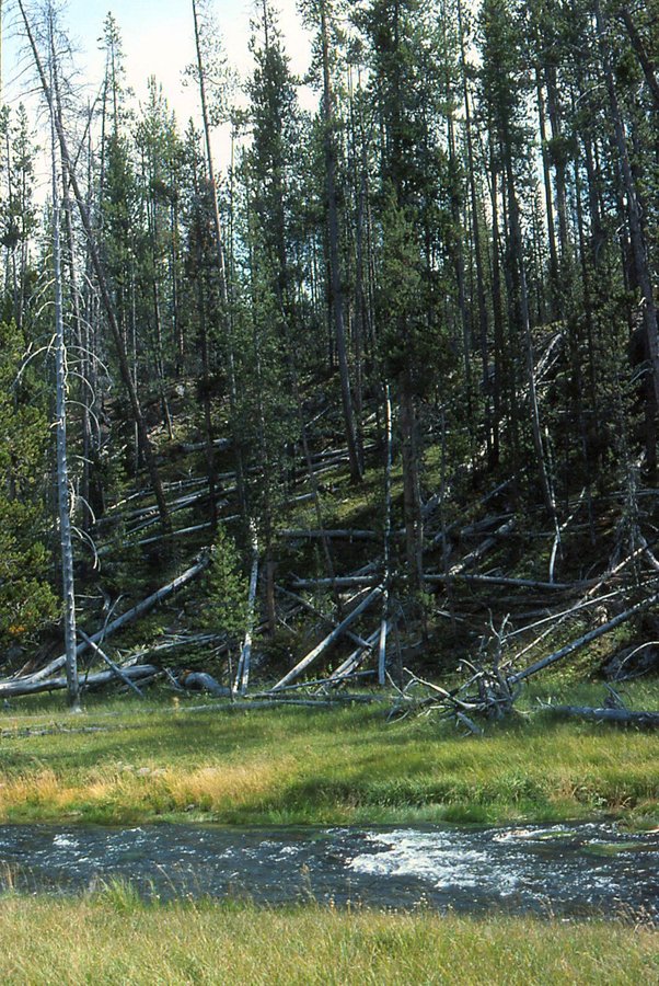 Fallen trees by the Gibbon River near Gibbon Falls